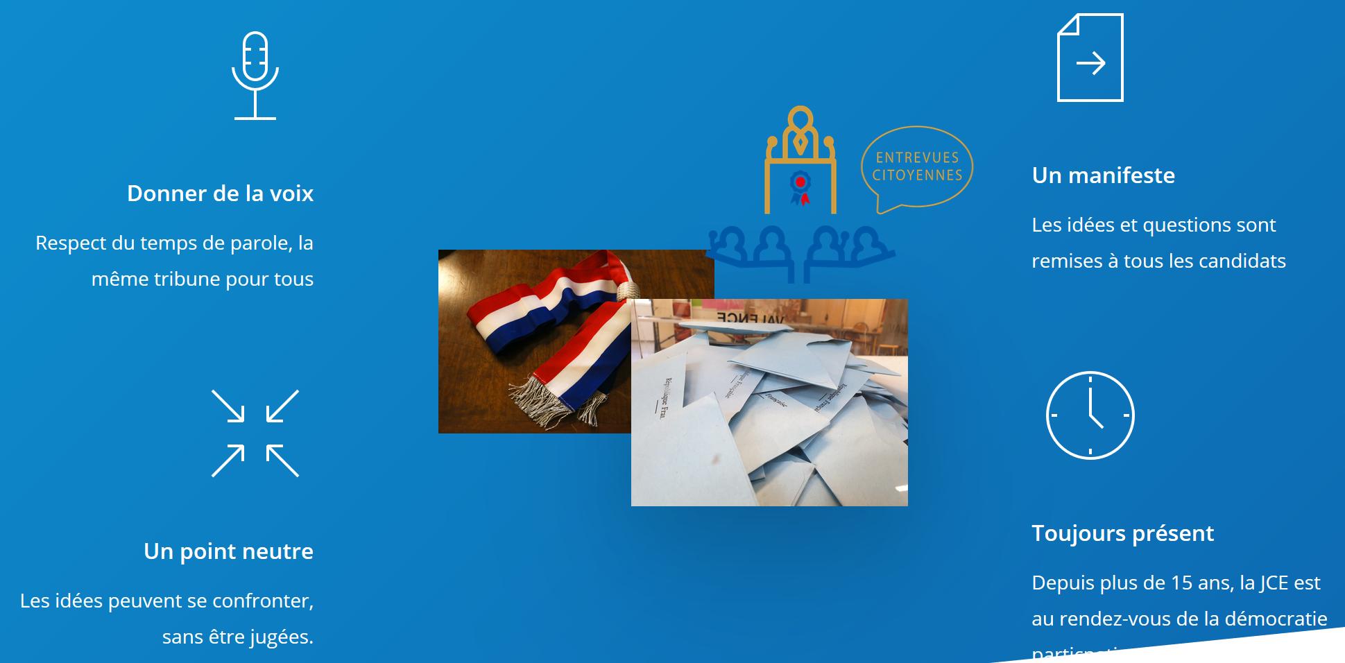 Mouvement reconnu d’utilité publique, association citoyenne par son action et par-dessus tout non partisane, la Jeune Chambre Économique Française est fortement concernée à chaque échéance électorale. Information sur les élections, sensibilisation au vote, rencontres avec les candidats et forces de proposition pour construire notre avenir… A chaque échéance, ce sont autant d’initiatives locales qui voient le jour sur le territoire français sous l’impulsion de jeunes citoyens engagés, âgés de 18 à 40 ans.
